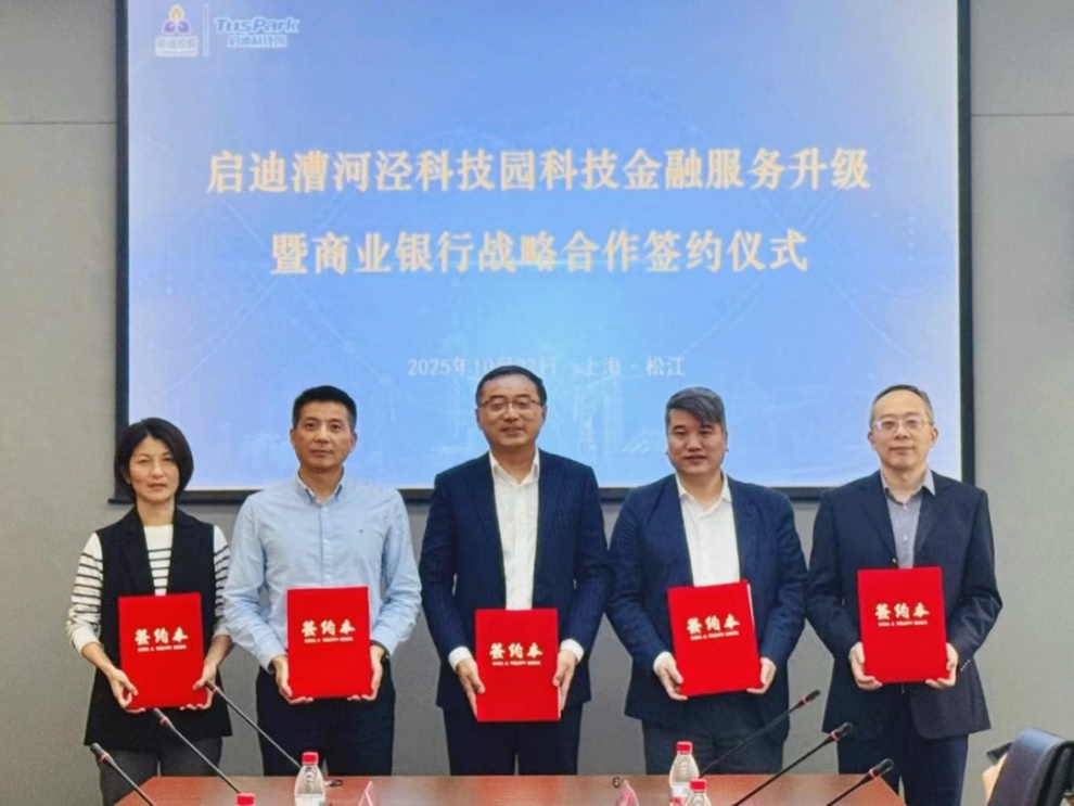 10月22日,为引入优质金融资源,助力保障科创企业全生命周期资金,促进企业的加速成长,松江区中山街道商会会员单位启迪漕河泾(中山)科技园举行“科技金融服务升级战略发布暨商业银行合作签约仪式”。启迪漕河泾(中山)科技园总经理徐永昌,中国邮政储蓄银行松江支行行长强永超、交通银行松江支行副行长夏元庆、上海银行松江支行副行长黄克锋、中国农业银行松江支行公司金融部徐丽梅等四家银行代表,与园区重点企业代表齐聚一堂,围绕企业融资需求、跨境结算、供应链金融等话题展开深入交流,共同开启园区科技金融服务体系全面升级的新篇章。