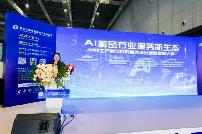 3月24日,“AI解密行业服务新生态:2026生产性互联网服务平台创新发展大会”在国家会展中心(上海)顺利举办。会议由中国五金交电化工商业协会指导,上海市工商联工业品服务商会联合全国五金机电采购联盟主办,腾讯云计算(北京)有限责任公司、上海南洋万邦软件技术有限公司及江苏银行股份有限公司上海分行共同协办。