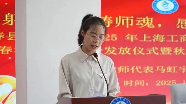 会上,宣读了获奖教师及团队名单,并为获奖者一一颁奖。现场掌声不断,气氛庄重而热烈。获奖教师代表马虹宇在发言中表达了对爱心机构及学校的由衷感谢,并分享了扎根边疆、践行育人使命的动人经历。她表示,这份荣誉不仅属于个人,更属于所有坚守在边疆教育一线的同行者,是沪滇教育协作的生动见证。