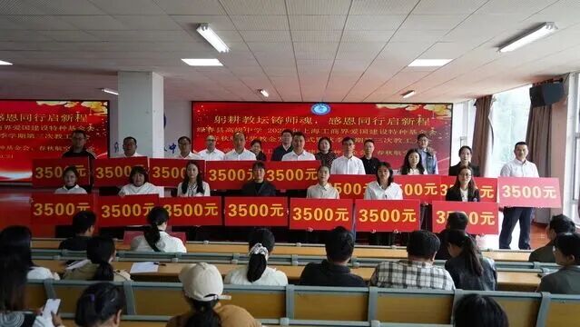 上海工商界爱国建设特种基金会党支部书记、办公室主任宋艳雯在讲话中,高度肯定了绿春县高级中学取得的育人成果,并表示将持续支持边疆教育事业发展。为表达诚挚谢意,绿春县高级中学向基金会赠送锦旗,获奖教师及团队与爱心机构代表合影留念,定格这份山海相连的情谊。