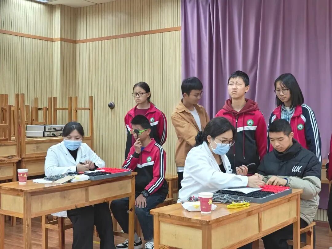 筛查期间,团队成员分工协作,引导孩子有序参与检查、逐人为孩子检测视力,详细记录数据;对初步发现视力异常的孩子,进一步插片验光以明确视力问题类型。经过4天的工作,团队完成了918名儿童青少年的视力健康筛查。