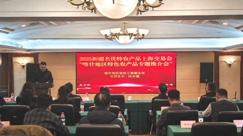 12月5日下午举办的喀什地区特色农产品专题推介会成果丰硕。喀什地区政协工委副主任艾尼瓦尔·吐尔逊系统介绍了喀什农业的资源与产业优势。喀什市疆鲜达、新疆美嘉食品(叶城)、泽普县润泽农业、巴楚县安鹿电商、巴楚安欣牧业以及新疆小蜂农业(莎车)等六家喀什优秀企业代表依次登台,向上海渠道生动展示合作愿景。