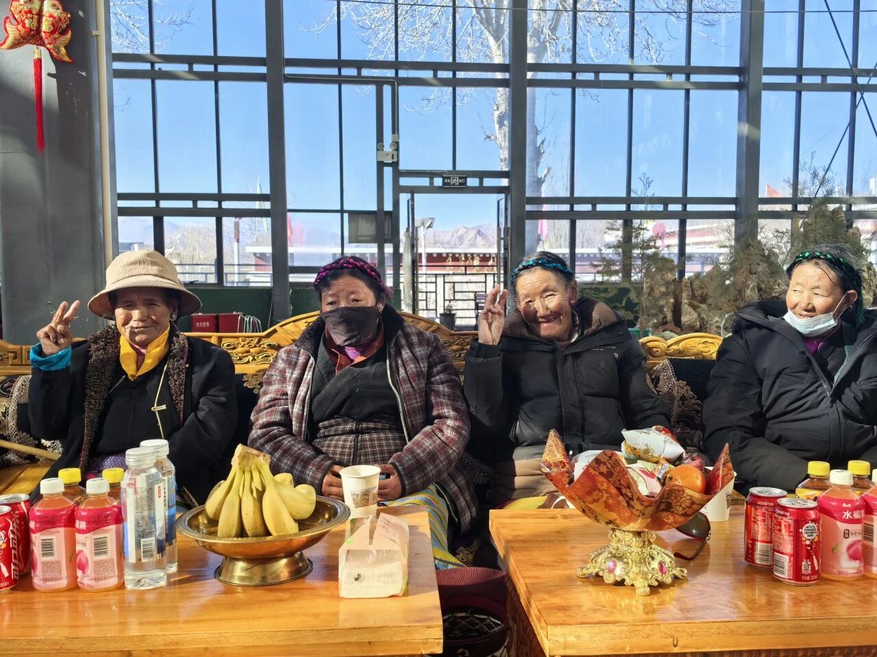 杨胜军与曹晓旭一同向老人们敬献了象征吉祥与祝福的哈达。活动最后,江孜县民政和退役军人事务局向上海援藏江孜小组及沙涓公司赠送了答谢锦旗,全体人员合影留念,温馨感人的氛围弥漫在整个服务中心。