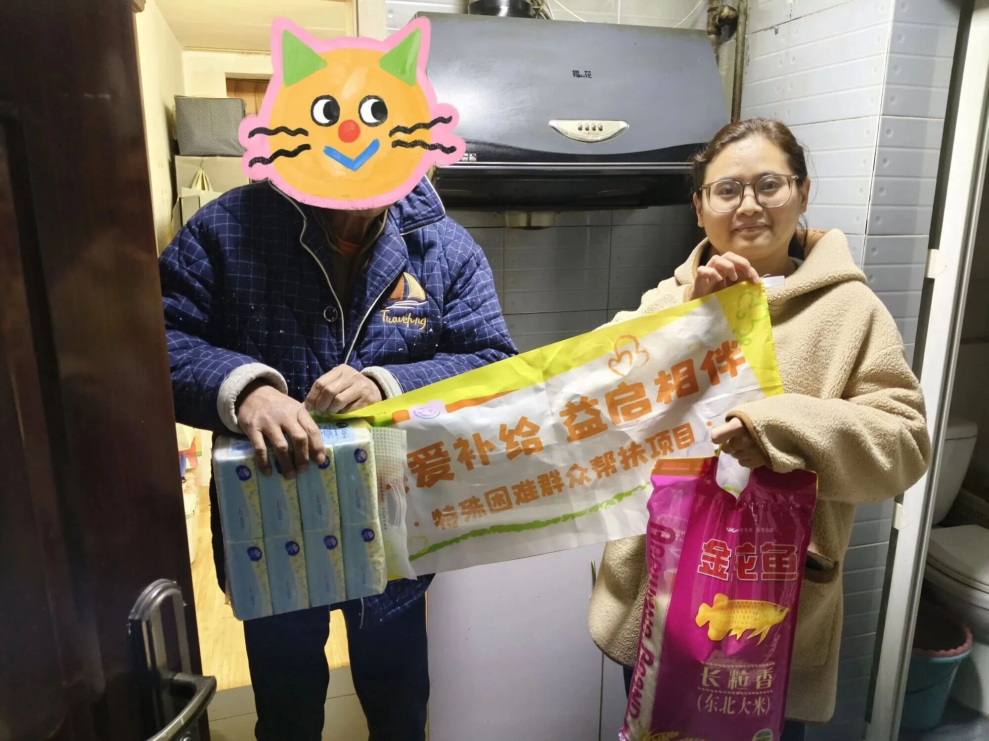 此次慰问活动中,基金会联合居委会精心筹备了大米、抽纸等生活必需品。每一份物资都经过细致筛选,力求贴合受助者的实际需求。志愿者们分组入户,不仅送上物资,更与老人们拉家常、问冷暖,叮嘱他们注意防寒保暖、用火用电安全。
