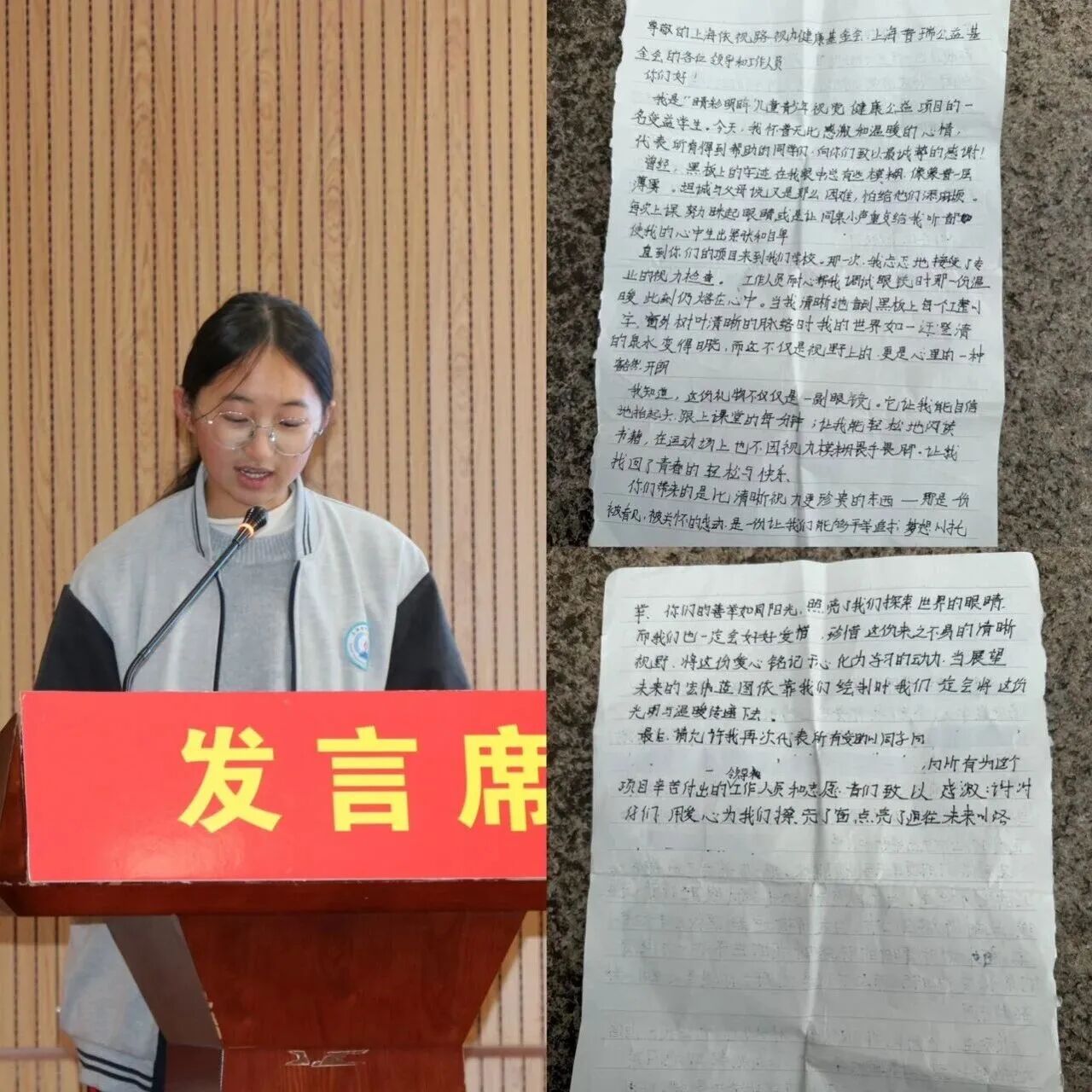 这段话,来自云南永胜民族中学学生代表刘甜愉在“睛彩明眸”眼镜发放仪式上的真挚发言。让她眼中“薄雾散去”的,正是上海依视路视力健康基金会联合上海普瑞公益基金会发起的“睛彩明眸”儿童青少年视觉健康公益项目。