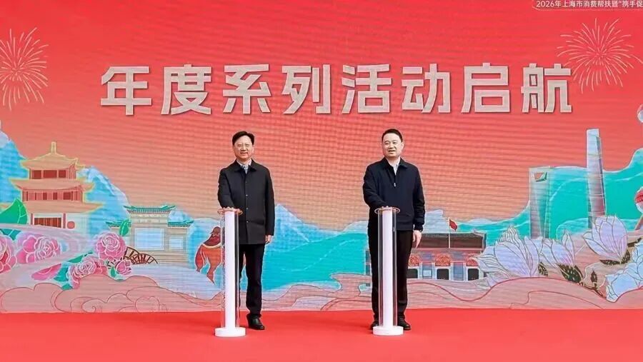 在全场瞩目下,与会领导与嘉宾共同推动象征年度行动正式开启的“共富之帆”船模。随着汽笛鸣响、风帆扬起、彩花齐发,2026年上海市消费帮扶暨“携手促振兴”系列活动正式宣告启航。上海市政府合作交流办对口协作处处长刘军表示,面对新阶段新要求,将创新机制、激发动力,立足长远、久久为功,一步一个脚印把工作做实,让“共富之帆”行得更稳、驶得更远。