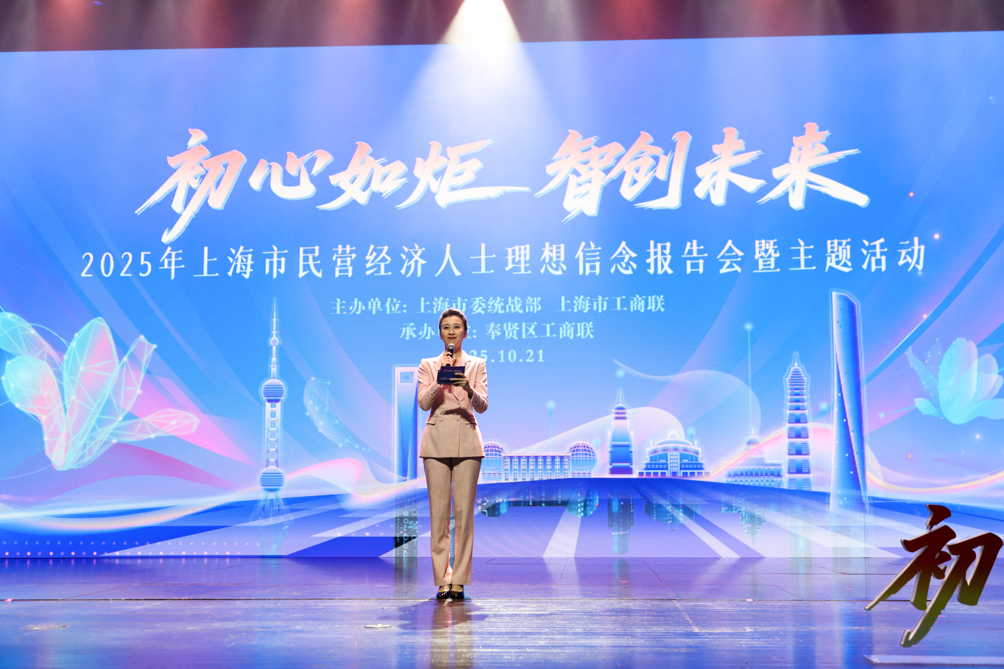 10月21日下午,以“初心如炬 智创未来”为主题的2025年上海市民营经济人士理想信念报告会暨主题活动,在九棵树(上海)未来艺术中心大剧场举行。全国工商联副主席、市政协副主席、市工商联主席、市总商会会长寿子琪,市委统战部副部长、市工商联党组书记王霄汉,奉贤区委书记刘平出席活动。