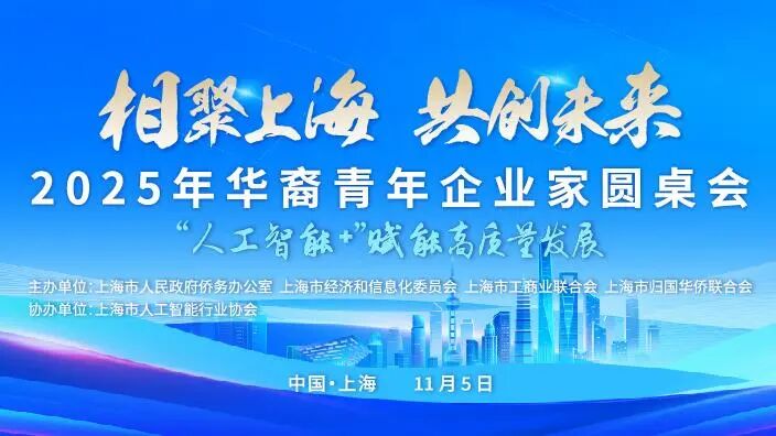 本次圆桌会以“‘人工智能+’赋能高质量发展”为主题,汇聚全球优秀华裔青年企业家的智慧和力量,聚焦人工智能领域国际合作与产业落地,为上海“五个中心”建设注入侨界强大动力。