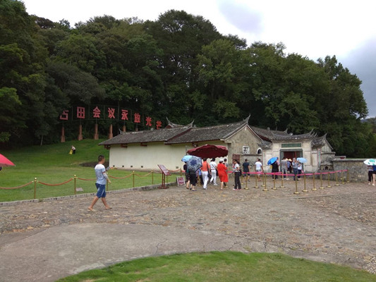 一走近古田会议旧址,“古田会议永放光芒”八个红色大字格外醒目,跨过青石大门,进入宽敞的前院,再过一道红色木门,就是古田会议的会场旧址。六排学生桌椅陈旧而整洁,会场中心的圆柱张贴着“中国共产党万岁”等标语。靠墙架着一块黑板,黑板上方排列着马克思和列宁像。会场右侧厢房第一间,只有一桌二凳,是当年毛主席的临时办公室。就在这间简陋的小房间里,毛主席为中国革命指明了正确的道路,引领中国共产党一步步走向成功。古田会议一致通过了毛主席亲自主持起草的《中国共产党红军第四军第九次代表大会决议案》,也就是《古田会议决议》,以及《政治决议案》、《废止枪毙逃兵决议案》、《接受中央指标决议案》、《拥护中央反对机会主义及托洛茨基主义反对派的决议》和《士兵决议案》等决议。大会选举产生了毛泽东任书记的新的中共红四军前敌委员会。2014年10月,全军政治工作会议在古田召开,习近平主席出席会议并参观古田会议旧址,他指出:“古田是我们党确立思想建党、政治建军原则的地方,是我军政治工作奠基的地方,是新型人民军队定型的地方。”