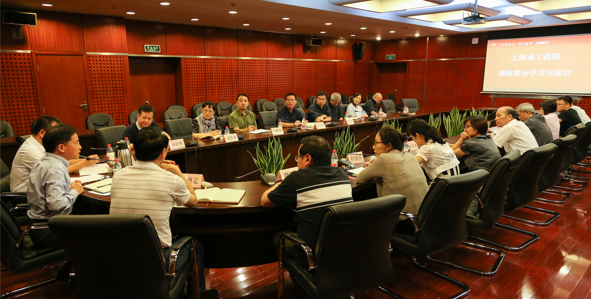 继7月参观五角场监狱开展警示教育后,8月23日下午,为进一步严明法纪底线,警示教育广大党员干部,市工商联党组成员、副主席徐惠明、汪剑明、施登定与本会处级以上党员干部集中观看两部警示教育片,并进行主题教育第13次集中学习研讨交流。