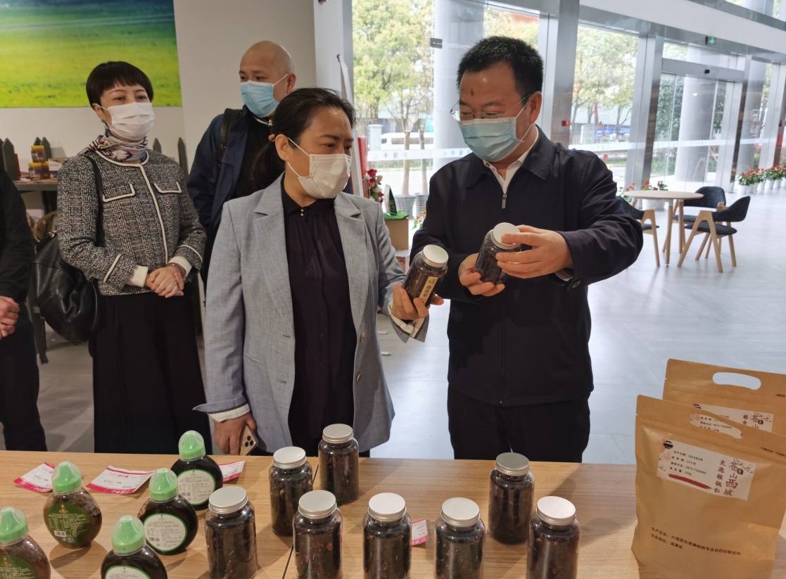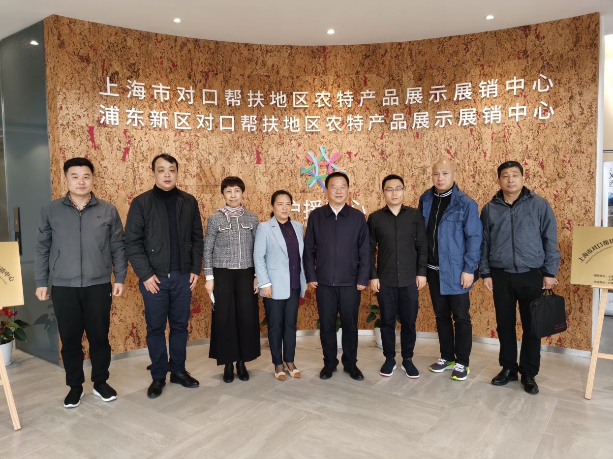 汪剑明一行参观了企业参与承办的上海市、浦东新区对口帮扶地区农特产品展示展销中心(沪援中心),听取了企业负责人任长艳关于主营业务南北干货特产销售情况、援建对口支援地区新疆喀什两家工厂的复工复产情况汇报。