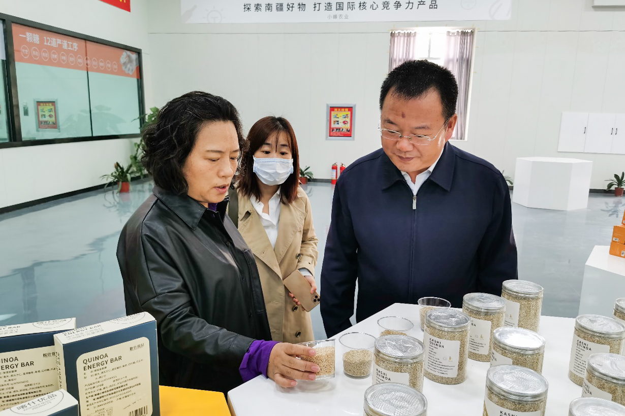 10月12日上午,代表团一行乘车来到莎车县,实地考察上海闽龙实业投资建设的小峰农业二期项目。上海闽龙实业十年扎根南疆,在戈壁滩上建设三个现代化工厂,围绕上海所能、当地所需、自身所为开展一系列卓有成效的扶贫产品开发工作,打造出具有市场核心竞争力消费扶贫产品,解决当地就业1000人,季节性用工1000多人,带动近20000个贫困农户脱贫致富。