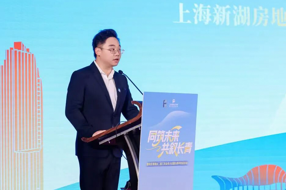 普陀区青商会会长、上海新湖房地产开发有限公司总经理黄立程致辞,对市工商联、区委统战部、区工商联及各友好商会、全体会员的支持与同行表示衷心感谢。他表示,十五年来,商会以党建为引领,构建“1+5”服务体系,为会员企业提供全方位支撑,凝聚奋进合力,斩获全国“四好”商会等多项殊荣。站在“十五五”开局与十五周年新起点,商会将进一步凝聚共识、优化服务,引导会员厚植家国情怀、勇担社会责任,为区域高质量发展注入更强青春动能。