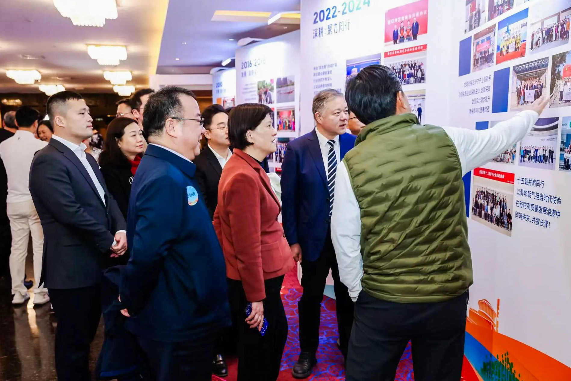 内场氛围热烈高涨,外场同样亮点纷呈。活动特设企业展示区,集中呈现会员企业创新成果与发展亮点;同步陈列的十五年发展大事记展板,浓缩商会十五载砥砺征程,引得会员们纷纷驻足,在追忆往昔中凝聚并肩前行的青商情怀。