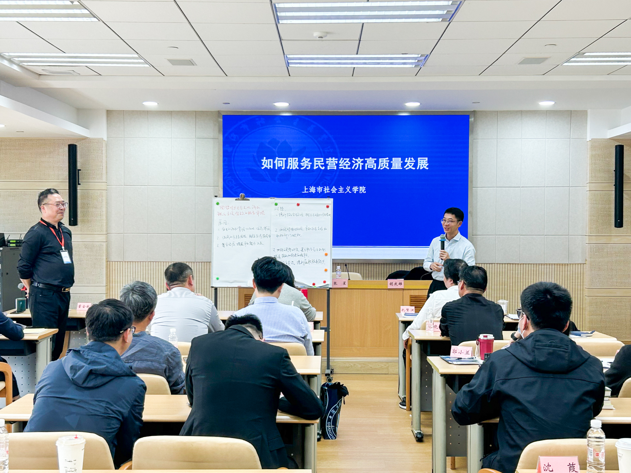 本次培训,市委党校教授唐珏岚和市社会主义学院教授蒋连华分别围绕“深入学习贯彻党的二十届四中全会精神 扎实推动‘十五五’时期高质量发展”和“牢固树立践行正确的政绩观 把习近平新时代中国特色社会主义思想落到实处”作精彩的辅导报告,上海市军民融合发展研究会战略研究室主任王强深入浅出地剖析了“国家利益与大国博弈”,世界贸易组织教席、上海对外经贸大学教授黄建忠深度解读了“当前国内外经贸新形势与我国企业发展新策略”,市工商联原副主席施登定用详实的数据、生动的语言讲述了“上海工商联的前世今生”,国浩律师(上海)事务所管理合伙人周喆人通过以案说法的方式专业细致、幽默风趣地讲解了“论民营企业实施中国特色现代化治理的必要性”。