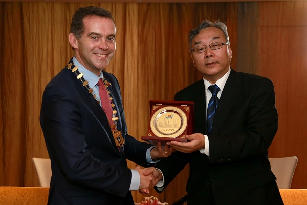 王志雄主席首先对奥康奈尔主席一行访沪表示热烈欢迎,并向科克客人介绍了上海经济转型发展以及上海市工商联的会员构成、主要职能等有关情况。王主席表示,科克商会是我会的海外友好商会,双方多年来保持着紧密的合作联系,在上海致力于经济转型发展以及加快建设具有全球影响力的科技创新中心的背景下,我会目前正在发起成立科技创新的促进会,希望今后通过进一步加强与科克商会、科研机构等的沟通交流,为两地企业实现共赢合作做好服务,有效推动上海与科克在投融资、食品安全、信息技术、教育培训、基础设施建设等领域的经贸投资合作。
