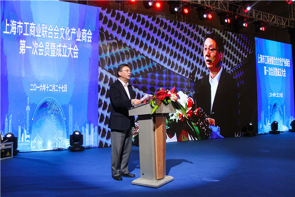 12月27日,上海市工商联文化产业商会第一次会员暨成立大会举行。上海市委统战部副部长、市工商联党组书记赵福禧,市工商联秘书长杨茜,市工商联部分直属商会负责人,商会会员等100余人出席会议。