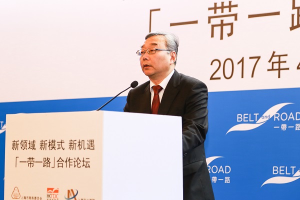 4月21日,由上海市商务委员会、香港贸易发展局和上海市工商业联合会共同主办的“新领域新模式 新机遇”“一带一路”合作论坛在上海隆重举行。全国工商联副主席、上海市政协副主席、上海市工商联主席王志雄出席论坛并致辞,香港贸发局主席罗康瑞、商务部台港澳司副巡视员康文分别致辞,上海社科院院长王战,香港贸发局研究总监关家明作主旨演讲。出席论坛的嘉宾还包括上海市商务委员会副主任申卫华、上海市商务委员会副主任杨朝、上海市港澳办副主任周亚军,以及香港特区政府驻上海经济贸易办事处邓仲敏。