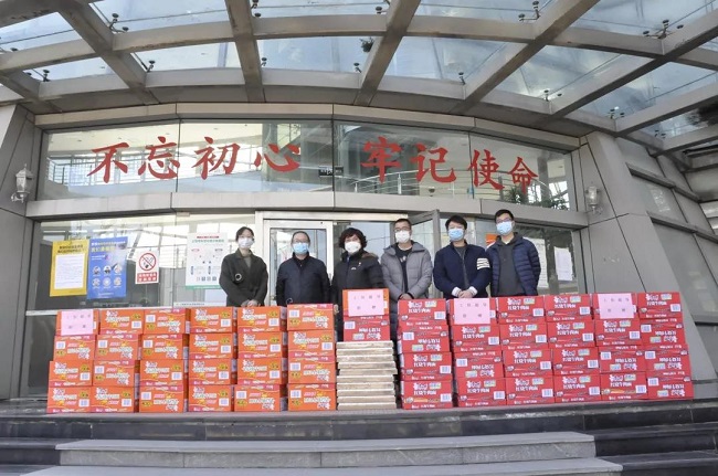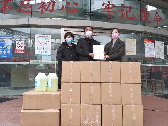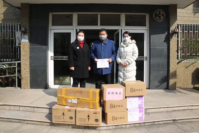 2月19日,区工商联主席单位伽蓝(集团)股份有限公司向生物科技园区新冠疫情防控办公室捐赠32箱护手霜,为 “战士们”的皮肤保驾护航。