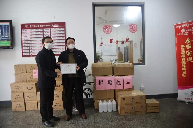 区工商联常委单位上海天阳钢管有限公司向青村镇人民政府捐赠10万元人民币,用于防疫工作。