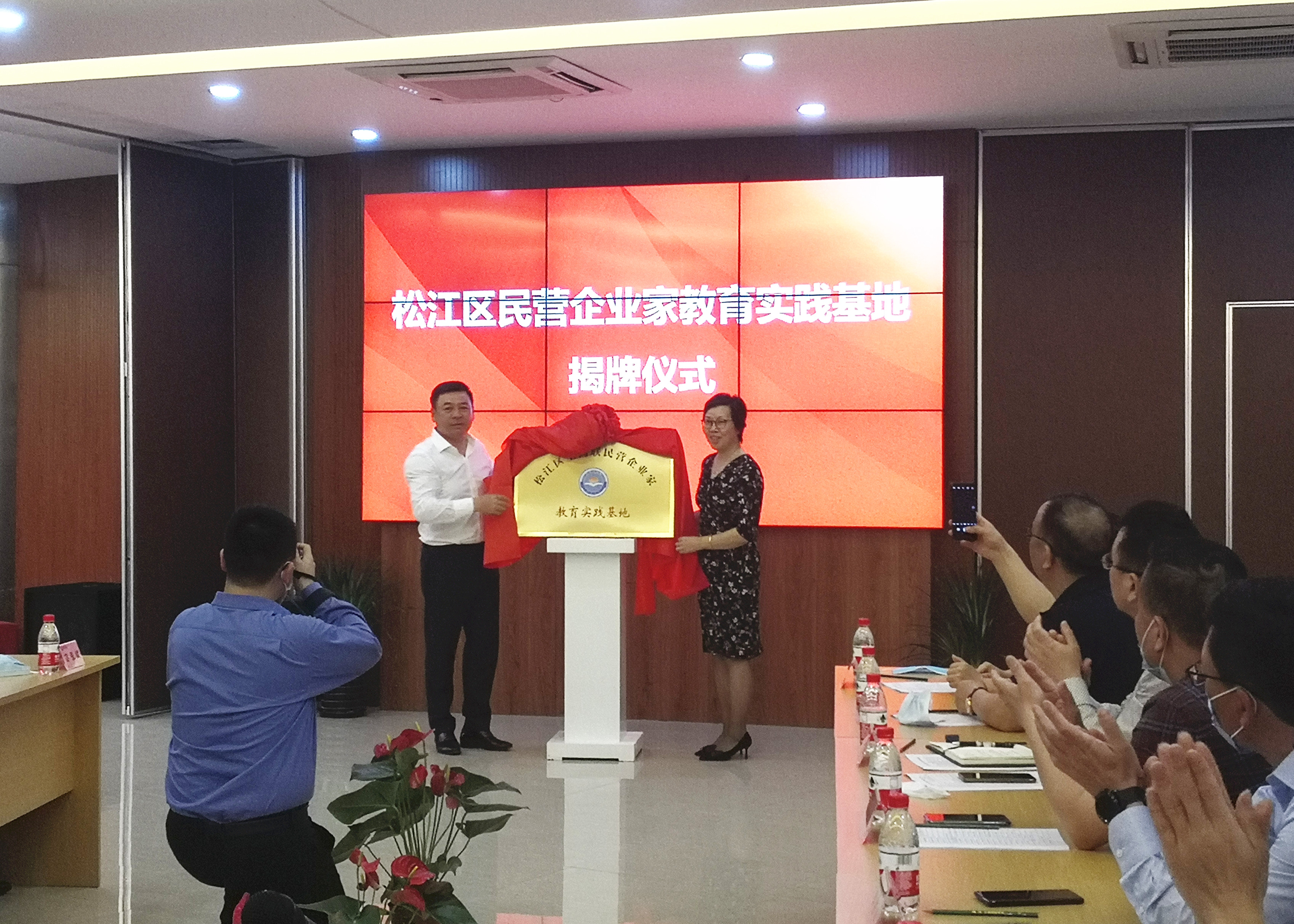 5月12日,松江区民营企业家教育实践基地揭牌仪式在上海回天新材料有限公司举行。市总商会副会长、松江区政协副主席、区工商联主席南存飞,区工商联党组书记杨仁娟为基地揭牌。区工商联主席会长、经开区商会班子约30人共同见证。
