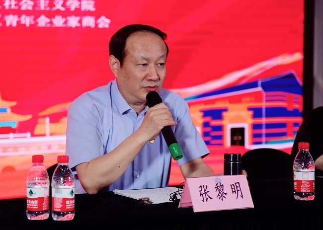 汤朔梅点评认为张黎明院长的讲课生动有趣,有助于企业家厘清历史脉络、认清历史事实、坚守发展与创业的初心,是一次很好的红色教育洗礼。