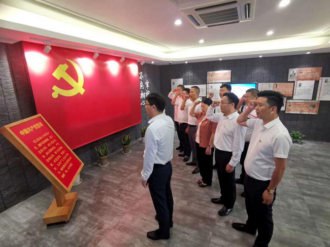 在区党建服务中心,区工商联江苏商会党总支党员观看了习近平总书记率全体中央政治局常委在中共一大会址纪念馆重温入党誓词的视频——《看齐》,并在党总支书记翟杰的带领下,重温入党誓词。