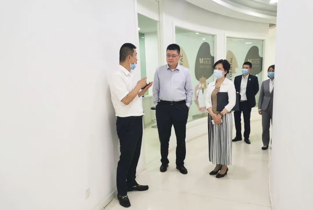 沈权一行首先参观了英博口腔位于金外滩广场的门诊部,了解企业复工后疫情防控情况及经营状况。据悉,英博口腔成立于2016年,目前在全国有5家分所,主营口腔种植、口腔正畸、牙齿美白、美学修复、牙周修复、儿童口腔,秉承“种植,让生活更美好”的品牌塑美理念,结合欧美高端齿科先进的诊疗设备以及先进的医疗管理体系,不断引领前沿技术,为爱牙人士提供高品质的个性化服务。诊所自今年3月恢复经营以来,经营状况良好,发展稳定。