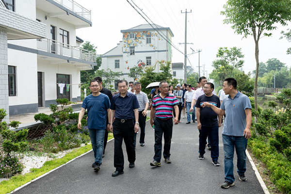 宝山区工商联一行参观港沿镇园艺村,考察园艺村乡村风貌,黄杨产业和市级乡村振兴示范村建设情况。