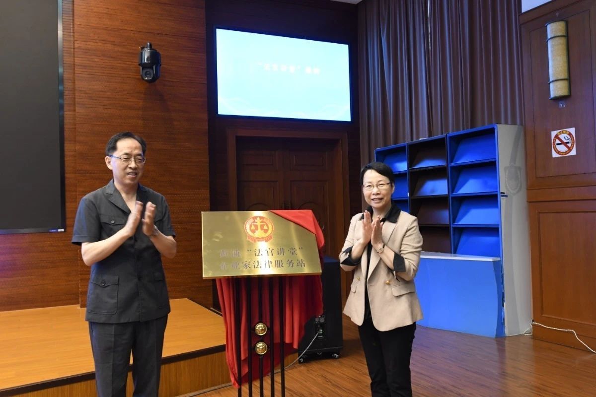 双方签订了合作协议并为“法官讲堂暨企业家法律服务站”揭牌。
