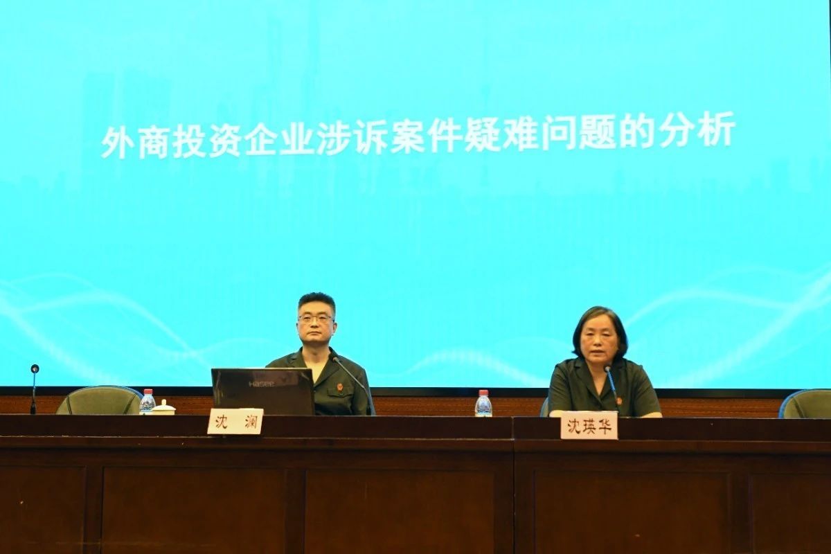 签约仪式后,区法院商事审判庭团队负责人沈澜法官为民营企业开讲“法官讲堂”第一讲——涉外商事案件评析。