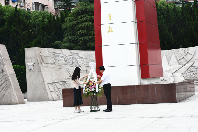 在革命烈士纪念碑前,考察团一行进行了凭吊仪式。大家深切默哀,以缅怀先烈、牢记使命;基层商会党支部书记代表为革命烈士敬献花圈。