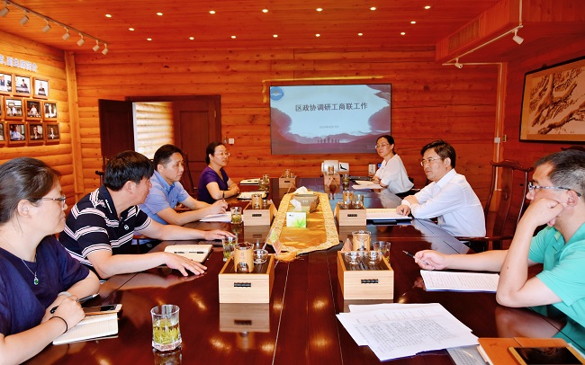 6月19日上午,奉贤区政协主席陈勇章、秘书长蒋仁军、办公室副主任杜莹等一行赴区工商联调研工作开展情况。区委统战部副部长、区工商联党组书记张青,区工商联党组成员、副主席薛冬梅、刘海华等出席会议。