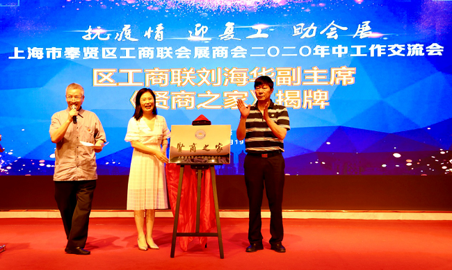 刘海华等为会展商会“贤商之家”揭牌。
