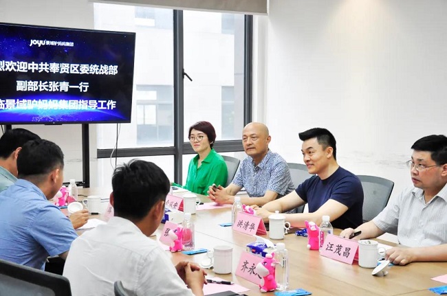 7月2日下午,奉贤区委统战部副部长、区工商联党组书记张青一行,在区工商联常委、奉贤安徽商会会长路敏陪同下,走访上海市安徽商会会长单位景域驴妈妈。上海市安徽商会会长、景域驴妈妈集团董事长洪清华携商会秘书处热情接待。