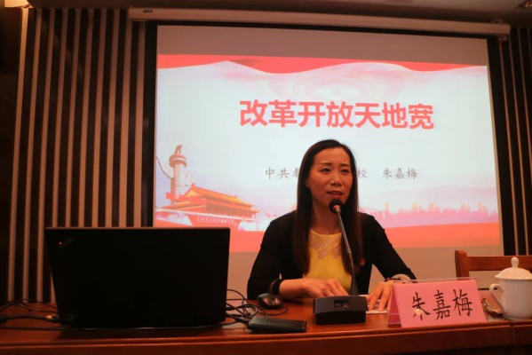 随后,区委党校老师朱嘉梅为学员们上了一堂题为“改革开放天地宽”的专题党课。