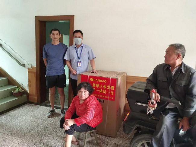金汇镇商会副会长单位上海兰宝传感科技股份有限公司认领了一对残疾夫妻想要台洗衣烘干一体机的梦想。7月1日下午,兰宝工会主席来到金汇镇东兴村送上洗衣机,为夫妻圆梦。