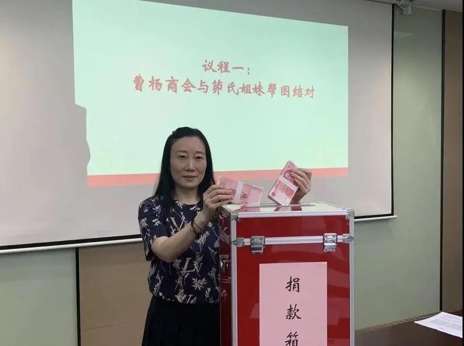 此次会议上,曹杨商会常务副会长徐翊峰代表商会与茆氏姐妹进行了帮困结对,捐款2万元。