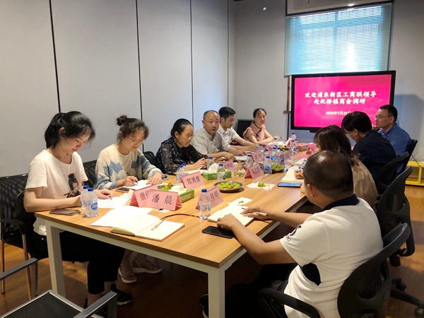 7月23日下午,浦东新区工商联党组副书记、专职副主席沈浩率调研组一行赴浦东新区祝桥镇商会调研党建工作,并进行座谈交流。祝桥镇党委委员田永福,区工商联执委、上海儒道文化传播有限公司董事长闵伟良,镇综合党委专职副书记、商会副秘书长宋庆华等参加调研座谈。