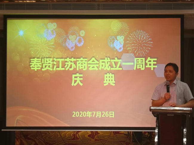 7月27日,奉贤区工商联江苏商会在上海大船酒店举办成立一周年庆典活动。奉贤区委统战部副部长、区工商联党组书记张青,上海市江苏商会顾问张葛德等应邀出席活动。上海市江苏商会会长、月星集团董事局主席丁佐宏发来视频祝贺。