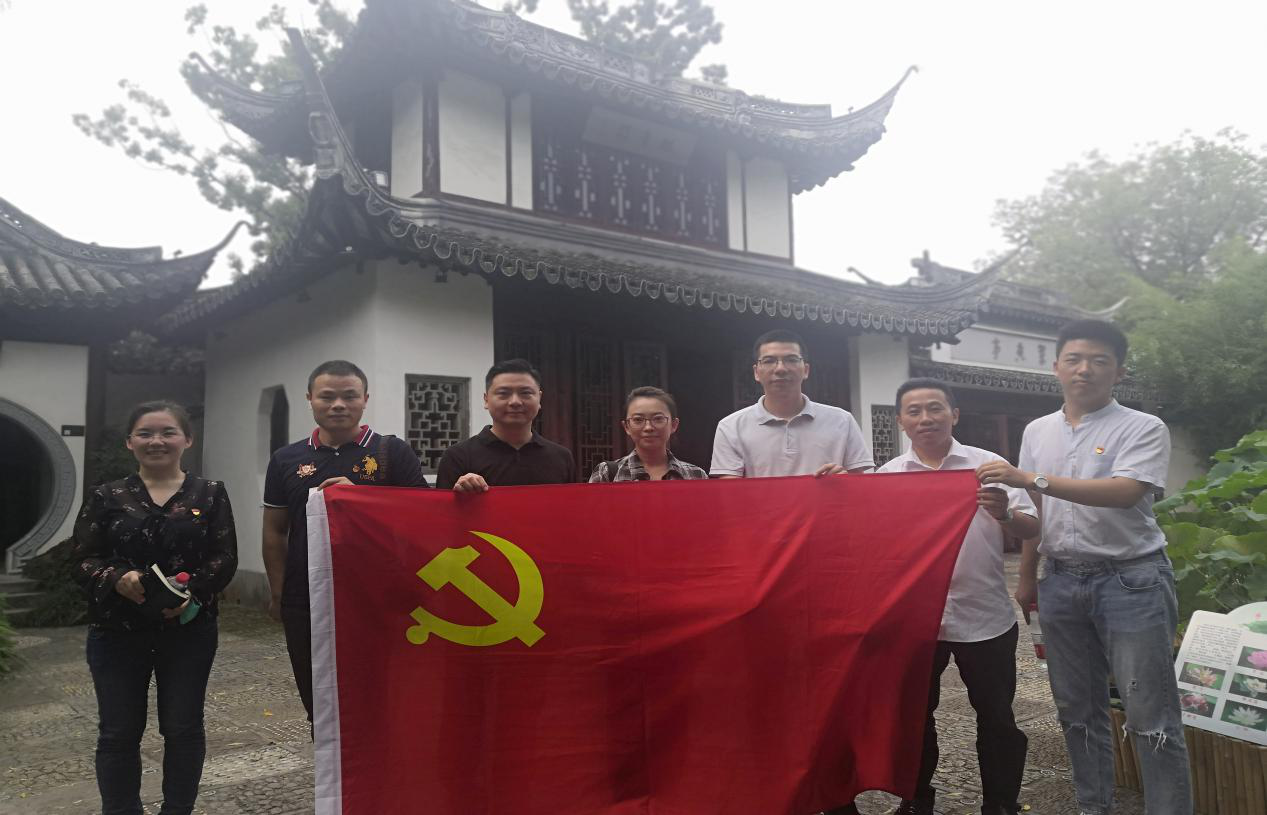 微音阁前,南翔镇商会党支部的党员们一起重温入党初心。