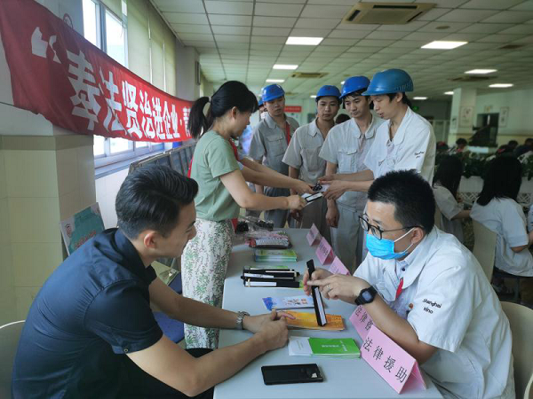 这次在上海日野发动机有限公司开展法律服务进企业活动,通过悬挂横幅、展板展出、发放宣传资料的形式,为企业及企业员工普及了扫黑除恶、民法典、消费维权等相关法律法规知识。上海逾驰律师事务所张驰强律师受邀来到活动现场,与企业员工进行面对面交流,帮助他们解答法律疑难问题,为企业员工提供法律咨询服务。