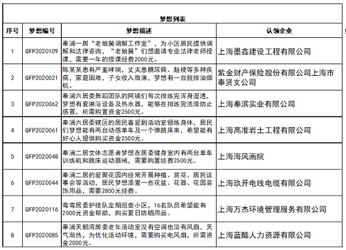 奉贤区工商联江苏商会在了解到圆梦行动后,主动认领了8个梦想,体现了企业家们满满的社会责任感。