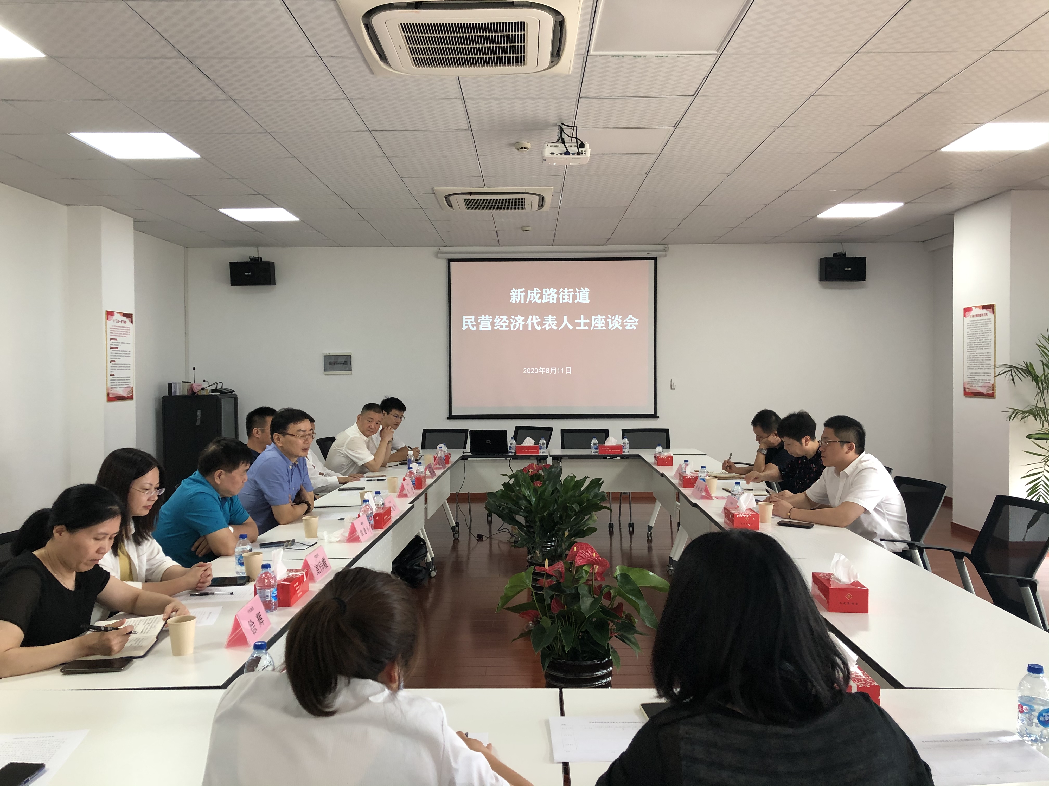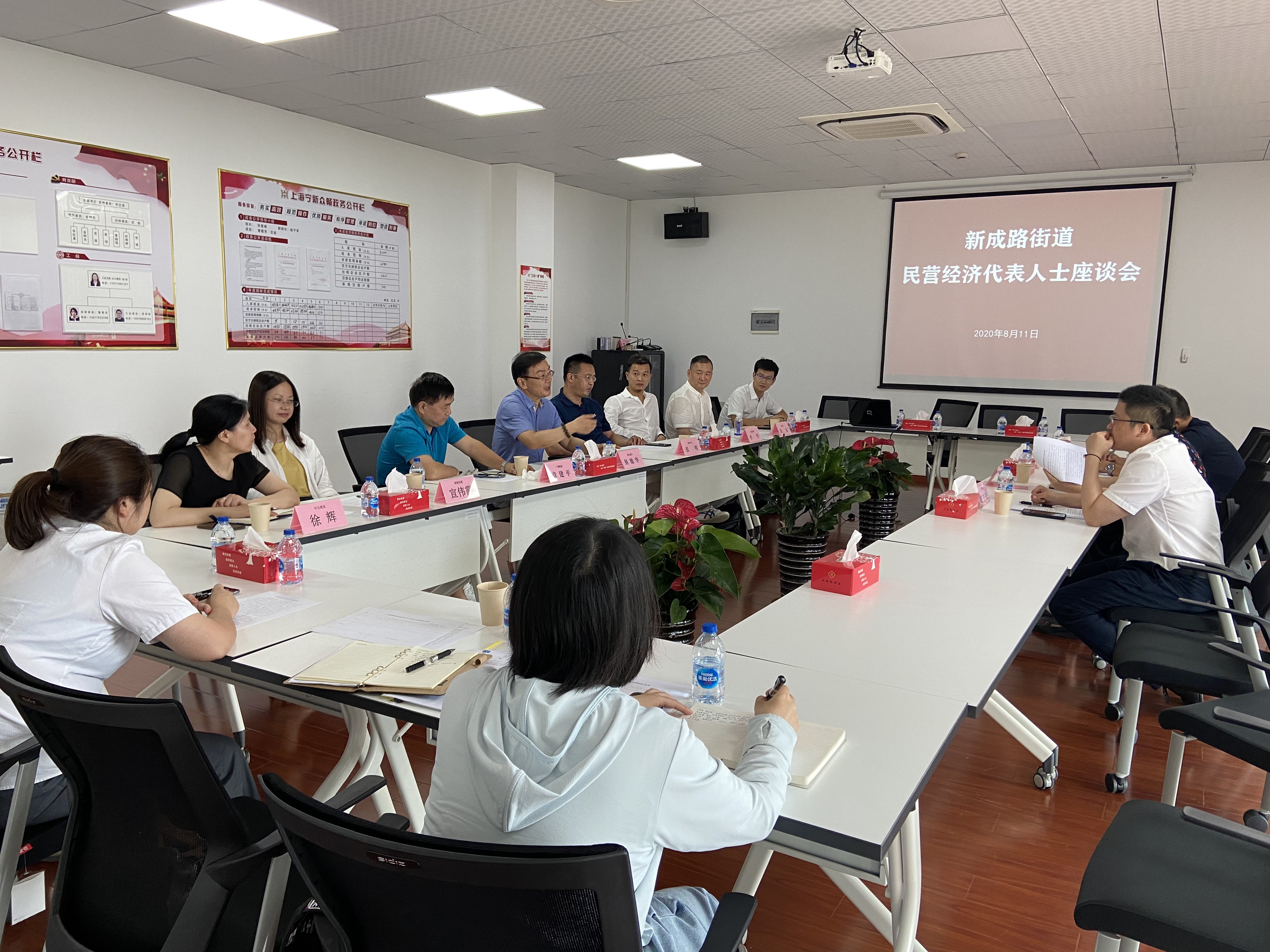 为深入学习习近平总书记关于民营经济工作系列讲话精神和中央、市委、区委重要文件精神,嘉定区新成路街道积极落实联系企业工作机制,于8月11日下午在新成路街道商会组织10余名民营企业负责人开展民营经济代表人士座谈会,听取民营经济人士的意见建议。新成路街道党工委委员、办事处副主任戈敏燕,商会会长封德华,商会秘书长赵宁军,社区发展办副主任张忠华参加座谈。