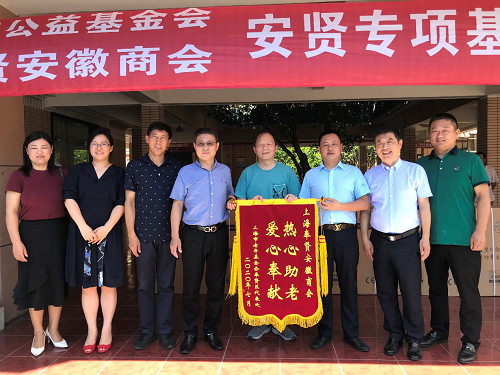 上海市老年基金会奉贤区代表处向奉贤区工商联安徽商会馈赠锦旗。