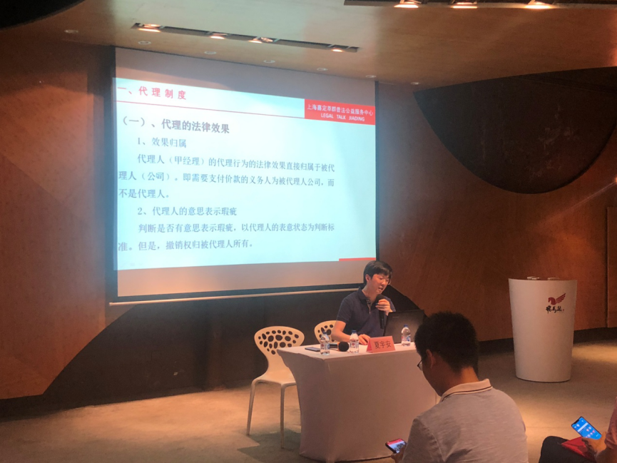 8月14日下午,嘉定真新街道商会在3131创意园10号楼的多功能厅举行《代理权与公司管理》专题讲座,邀请上海嘉定萃群普法公益服务中心夏宇安律师为企业授课。