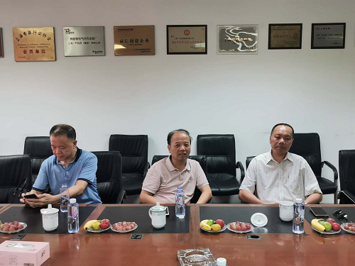8月25日,奉贤区经委党委书记徐建龙赴区工商联温州商会常务副会长单位上海一开投资集团有限公司和上海矿用电缆集团有限公司走访调研。区工商联温州商会副会长刘雪祥、秘书长陈建文等陪同。