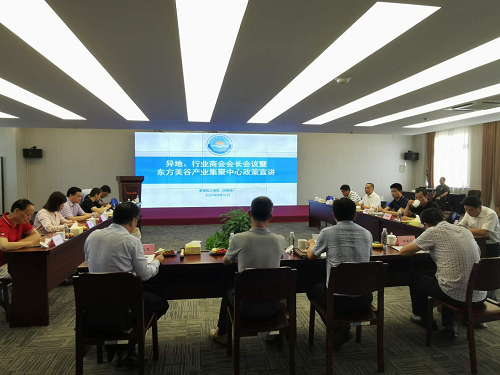 为了进一步贯彻落实区委、区府关于加快推进“东方美谷产业集聚中心”建设的要求,8月31日下午,奉贤区工商联在泰昌科技股份有限公司召开异地、行业商会会长会议暨东方美谷产业集聚中心政策宣讲会。奉贤区委统战部副部长、区工商联党组书记张青主持会议并讲话,区投资促进中心党组书记、主任顾卫星作政策宣讲,区工商联党组成员、副主席刘海华及区工商联7家异地商会、行业商会会长参加会议。