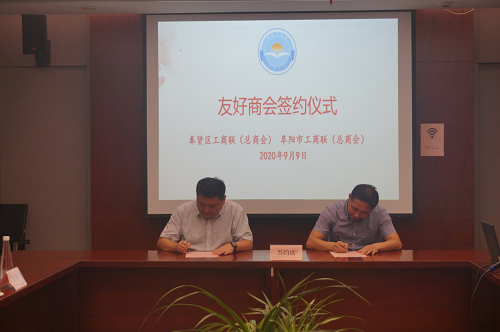 为了深入贯彻落实长三角一体化的国家战略,有效发挥商会组织的独特优势,精准服务奉贤、阜阳两地经济发展,9月9日下午,安徽省阜阳市政协副主席、市工商联主席、上海市人力资源保障局挂职副局长聂磊在安徽省政府驻沪办业务处三级调研员吴坚、阜阳市政府驻上海联络处主任徐浩陪同下来奉调研并与奉贤区工商联签订友好商会协议书。