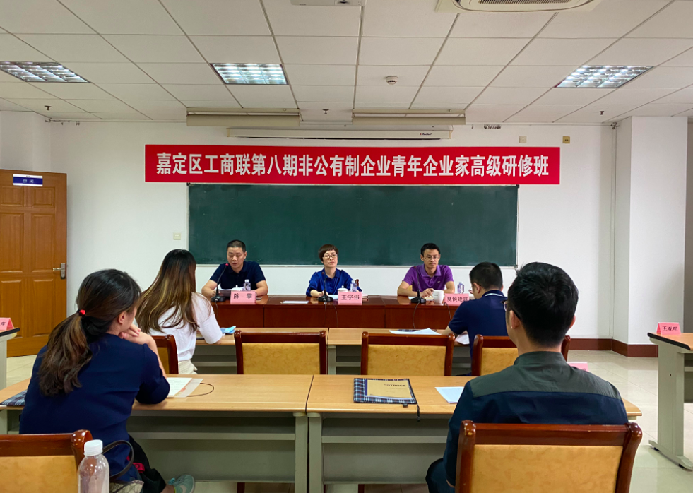 9月14日下午,嘉定区工商联第八期非公有制企业青年企业家高级研修班在中共上海市嘉定区委党校正式开班。此次研修班为期5天,共有30名青年企业家参加。他们来自汽车(零部件配件新能源售后)相关、物流储运、医疗、机械制造、餐饮服务、信息科技等行业。中共嘉定区委统战部副部长、区工商联党组书记王宇伟,区委党校副校长夏侯建球出席开班仪式。区工商联党组成员、副主席陈攀主持开班仪式。